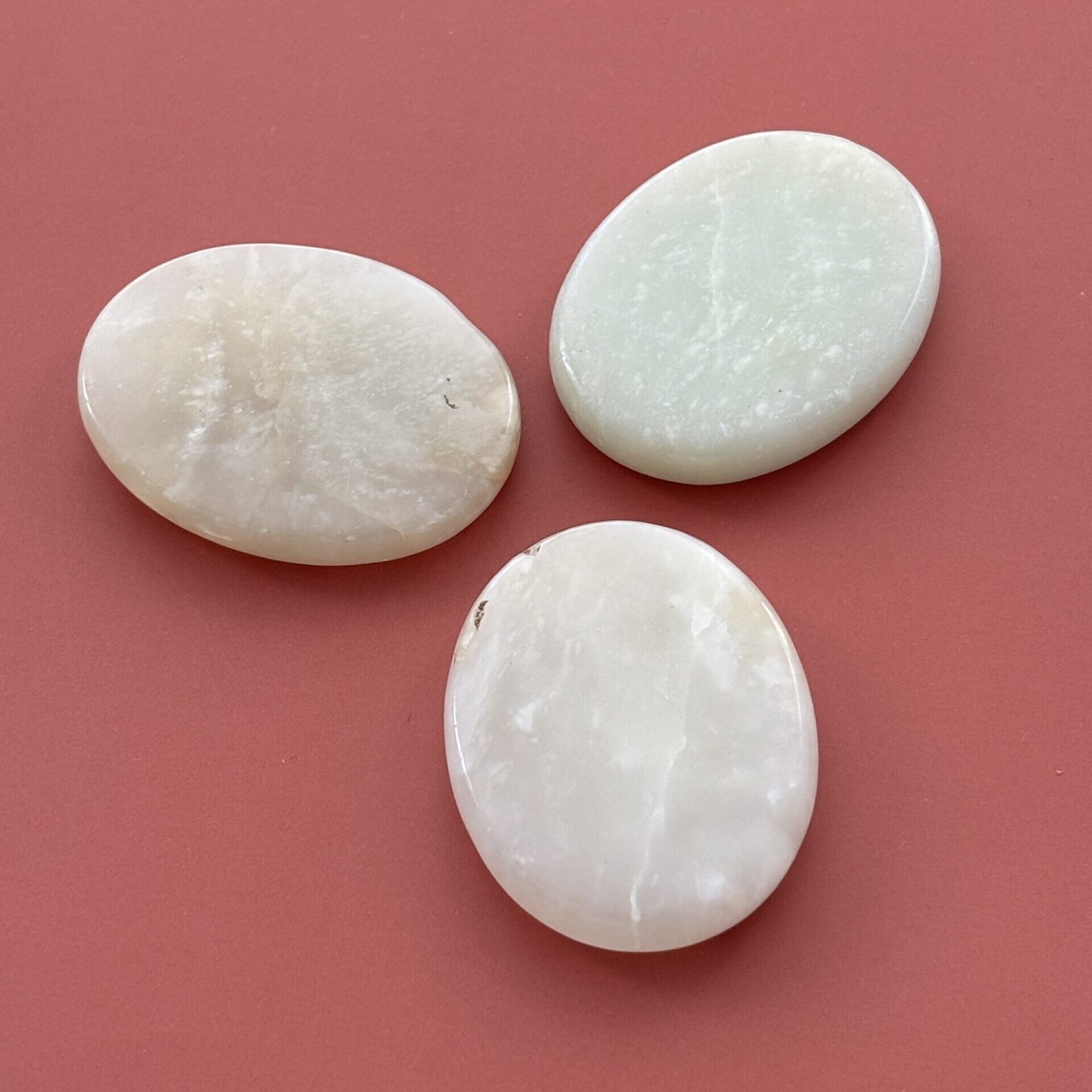 Jade de chine galet pierre plate – De formes plates, ils sont faciles à glisser dans la poche, le portefeuille ou le sac à main pour les avoir toujours sur soi.