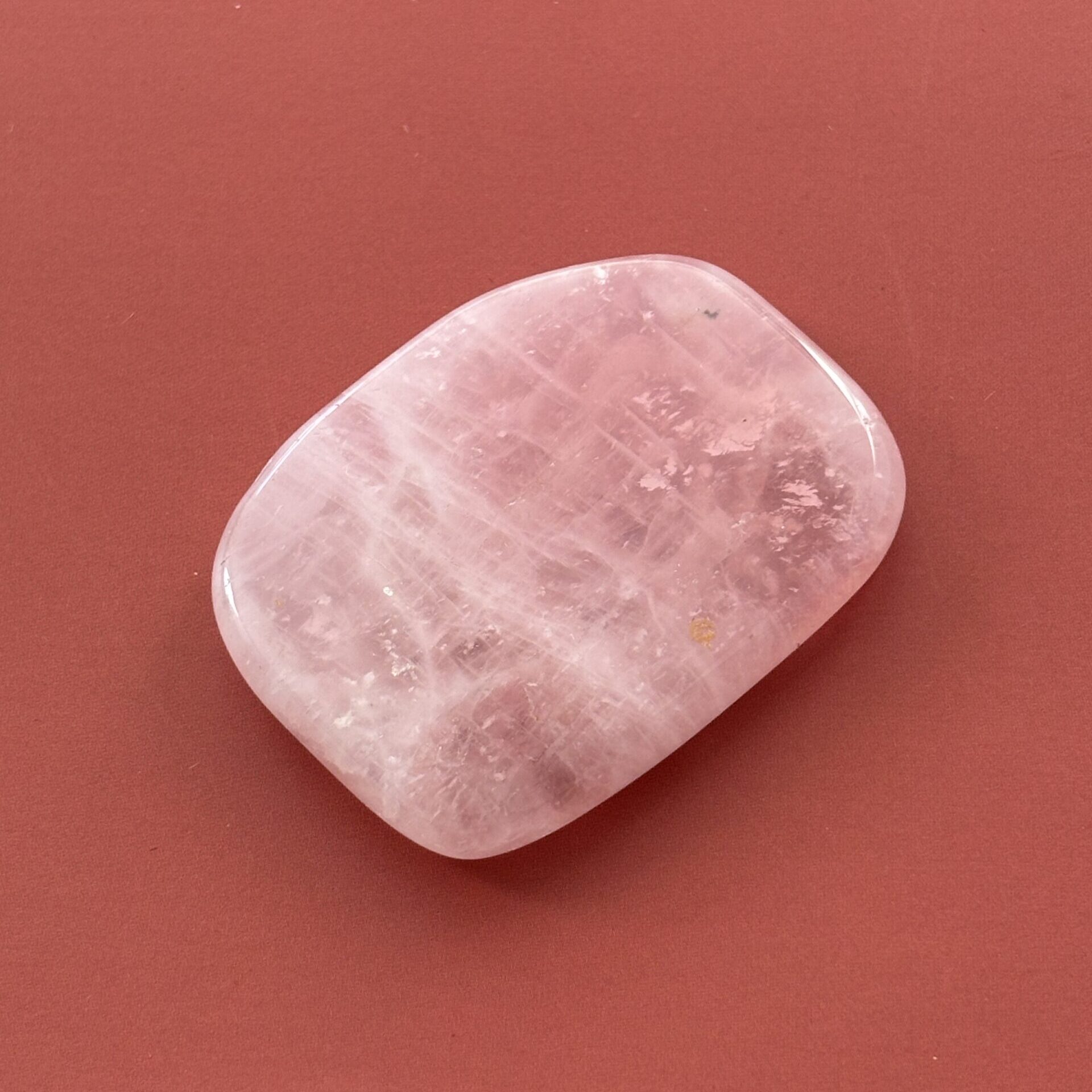 Quartz rose galet pierre plate – De formes plates, ils sont faciles à glisser dans la poche, le portefeuille ou le sac à main pour les avoir toujours sur soi.