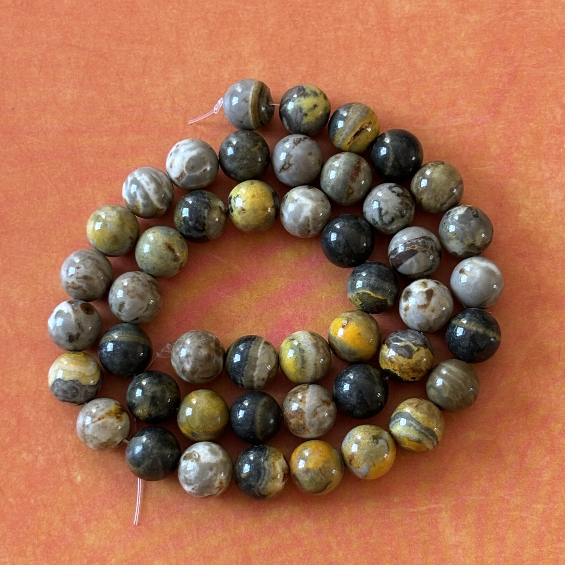Perles Jaspe Bumble bee 8 mm à l’unité– Provenance Indonésie – Qualité AA très bonne.