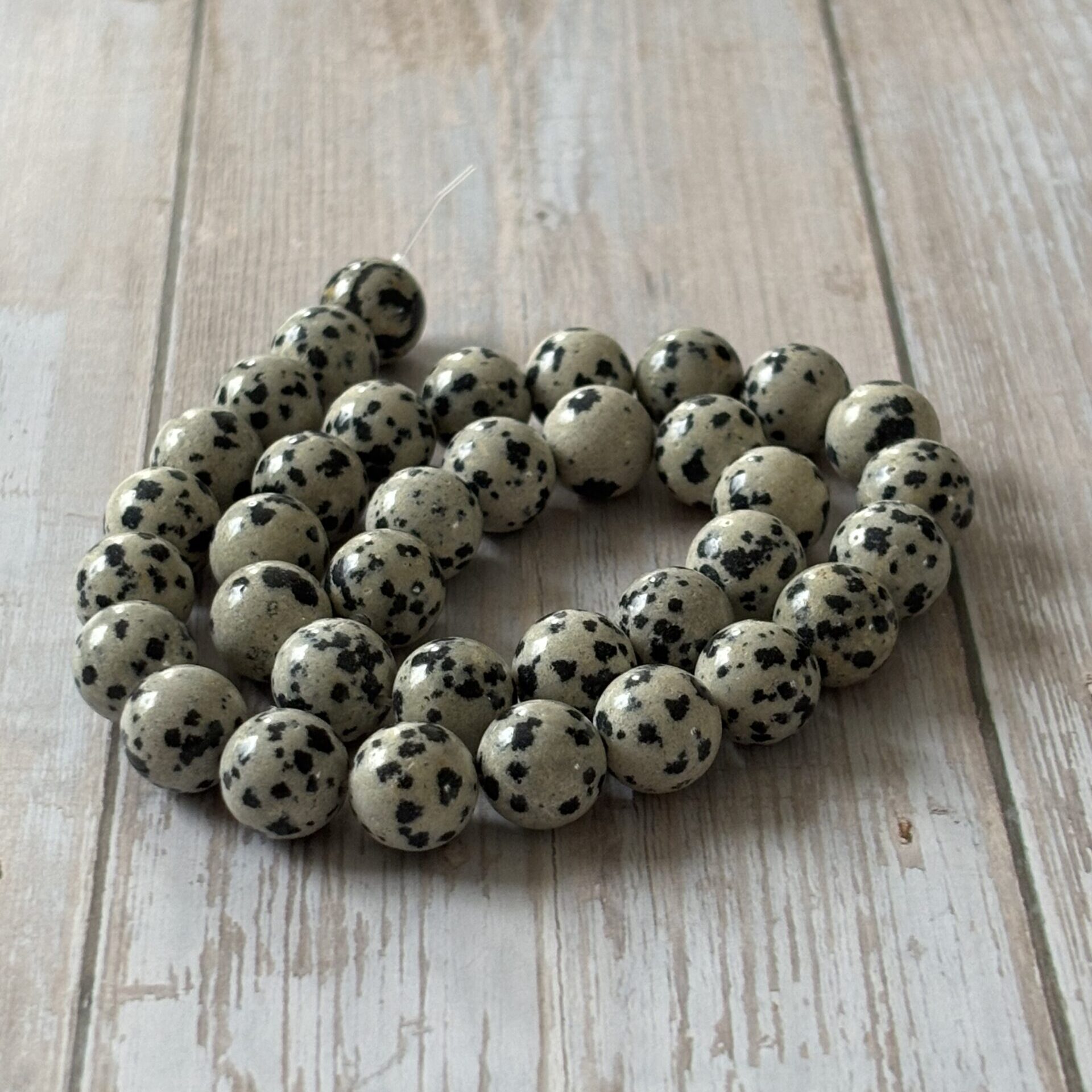Perles Jaspe Dalmatien 10 mm à l’unité – Provenance Mexique– Qualité AA très bonne.