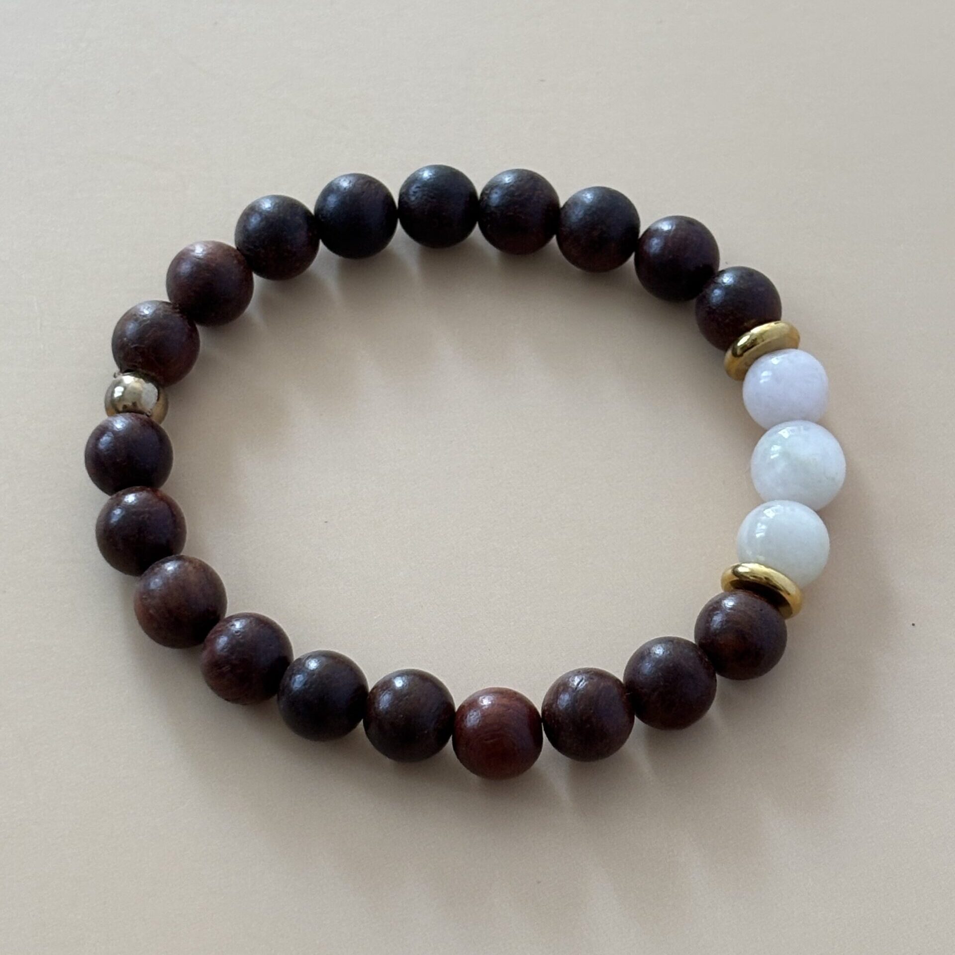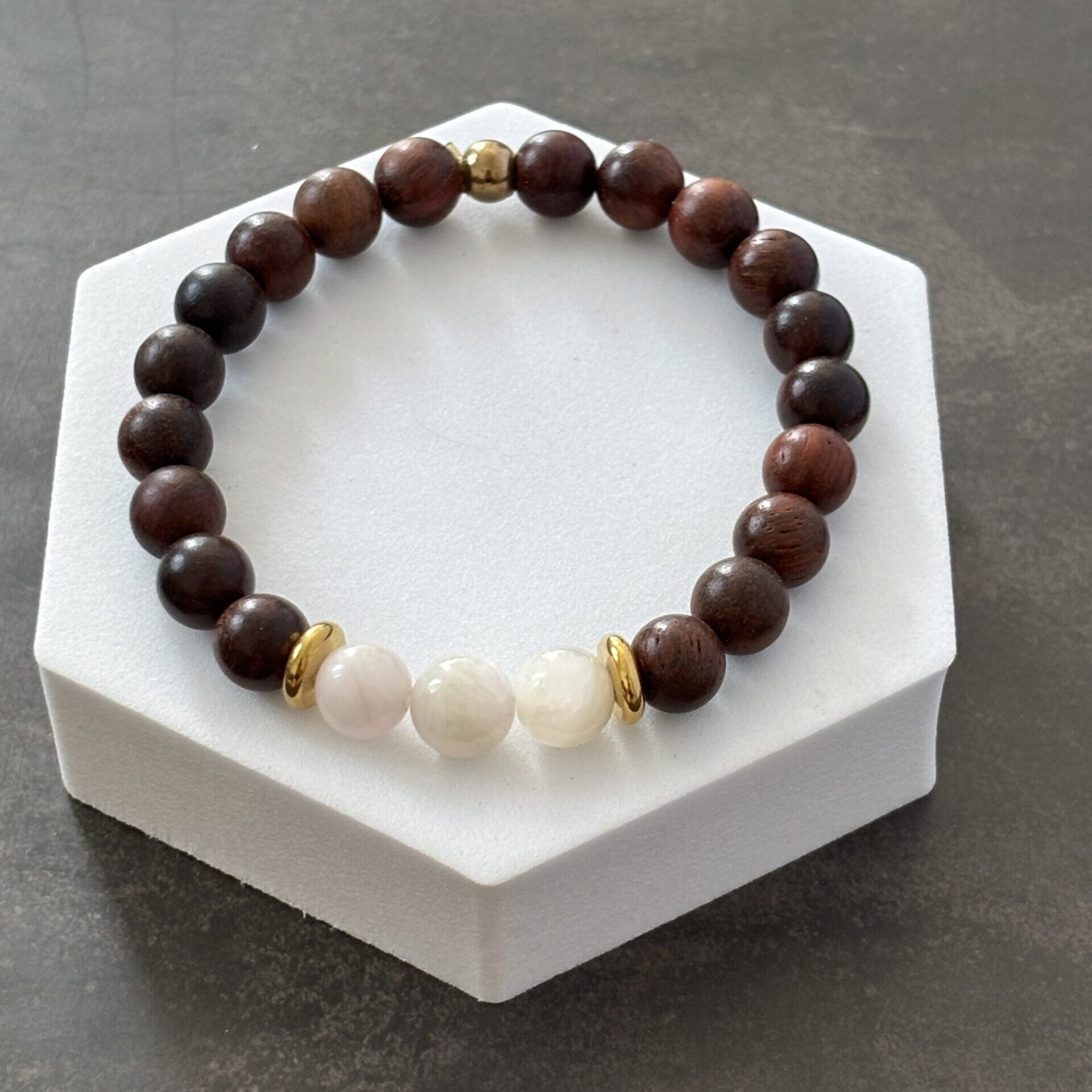 Kunzite et bois de rose – Bracelet pour poignet 16 cm
