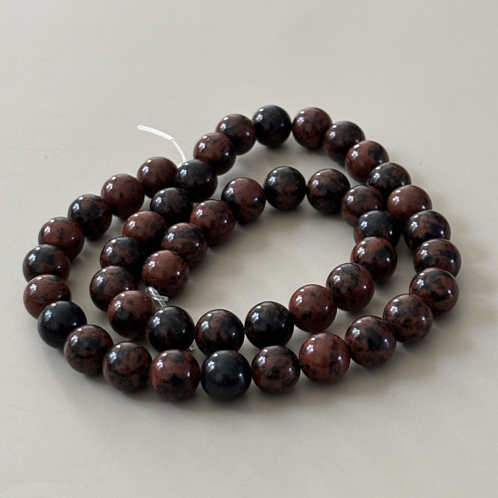 Perles Obsidienne acajou ou mahogany 8 mm à l’unité – Provenance Mexique– Qualité AA très bonne.