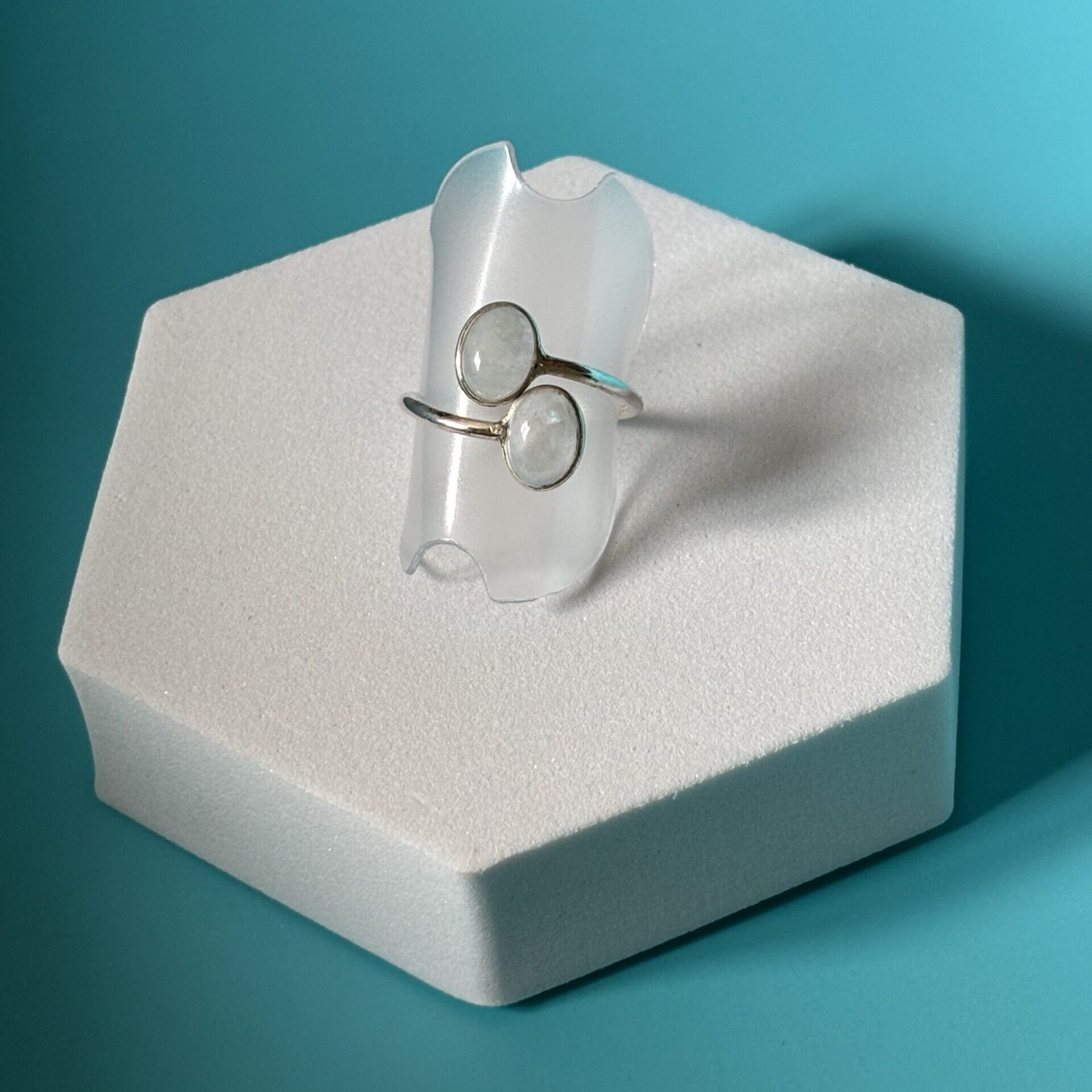 Bague argent 925 réglable et pierre de lune – Dimensions des pierres : 6 x 5 mm – Pierre qualité AA très bonne