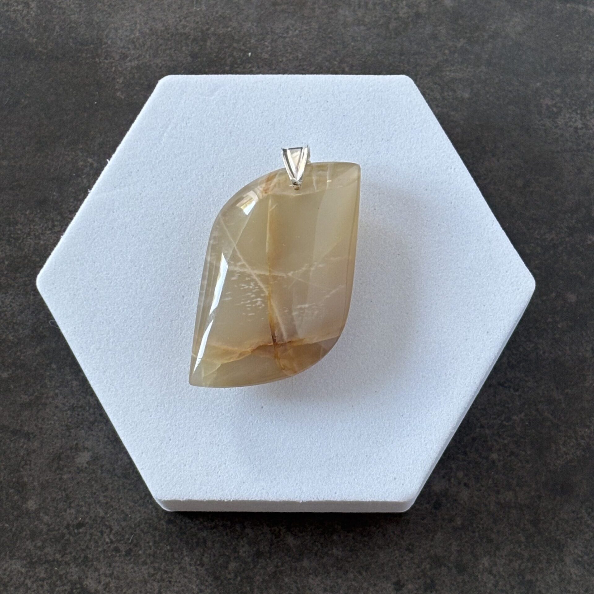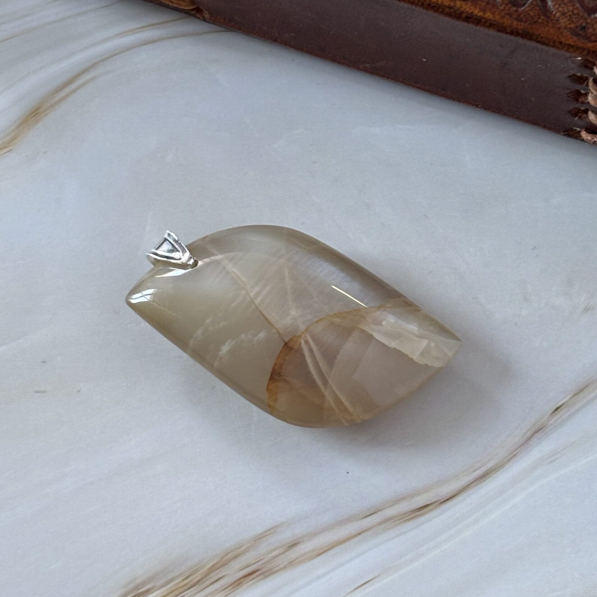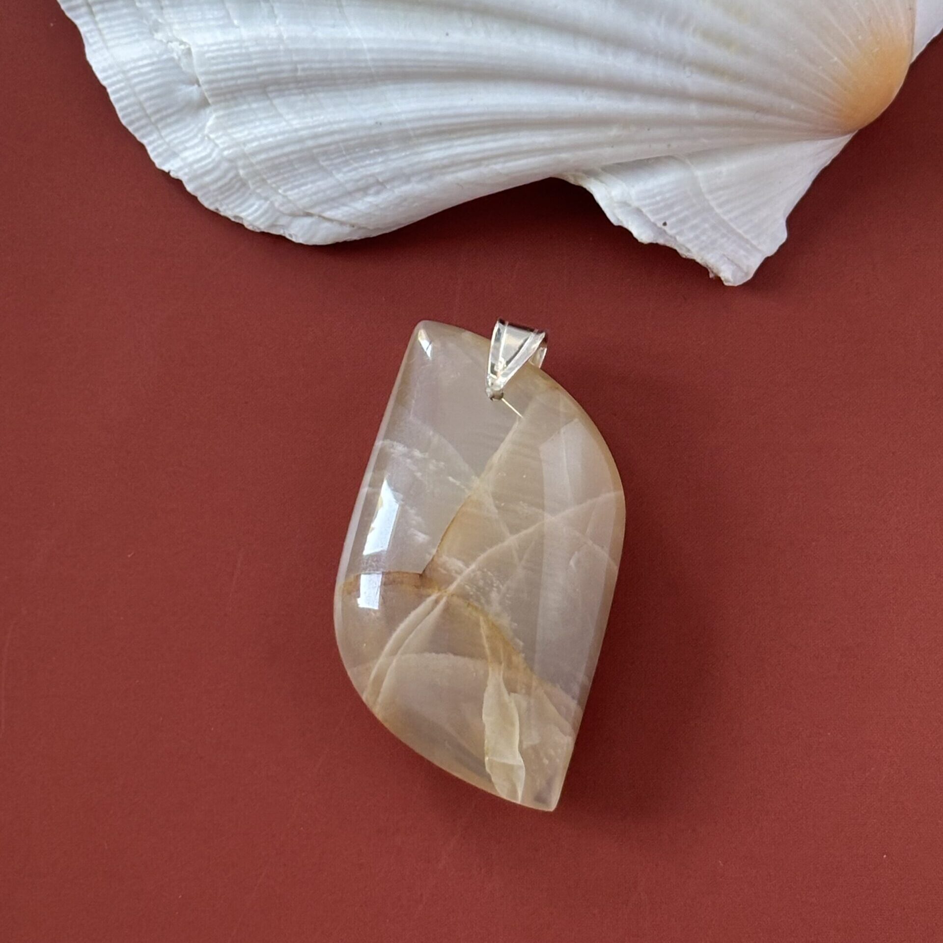 Pendentif Pierre de Lune orange – Dimension : environ 4 cm / 3 cm – Pierre qualité AA – Bélière métal argenté