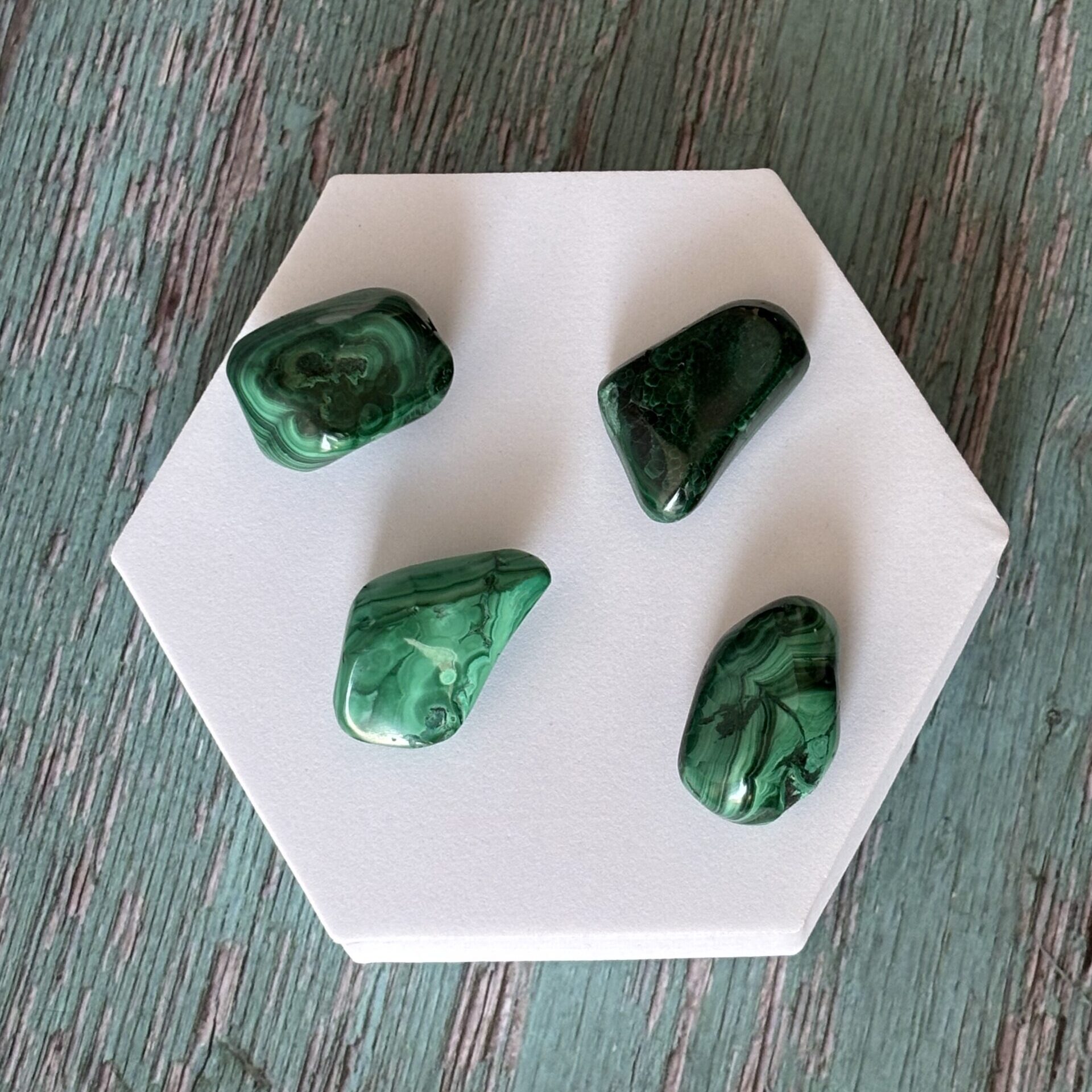 Malachite extra pierre roulée – Qualité AA+ très bonne – Légères et de petites tailles (2 à 3 cm), on peut les emporter partout avec soi – Vendue à l’unité.
