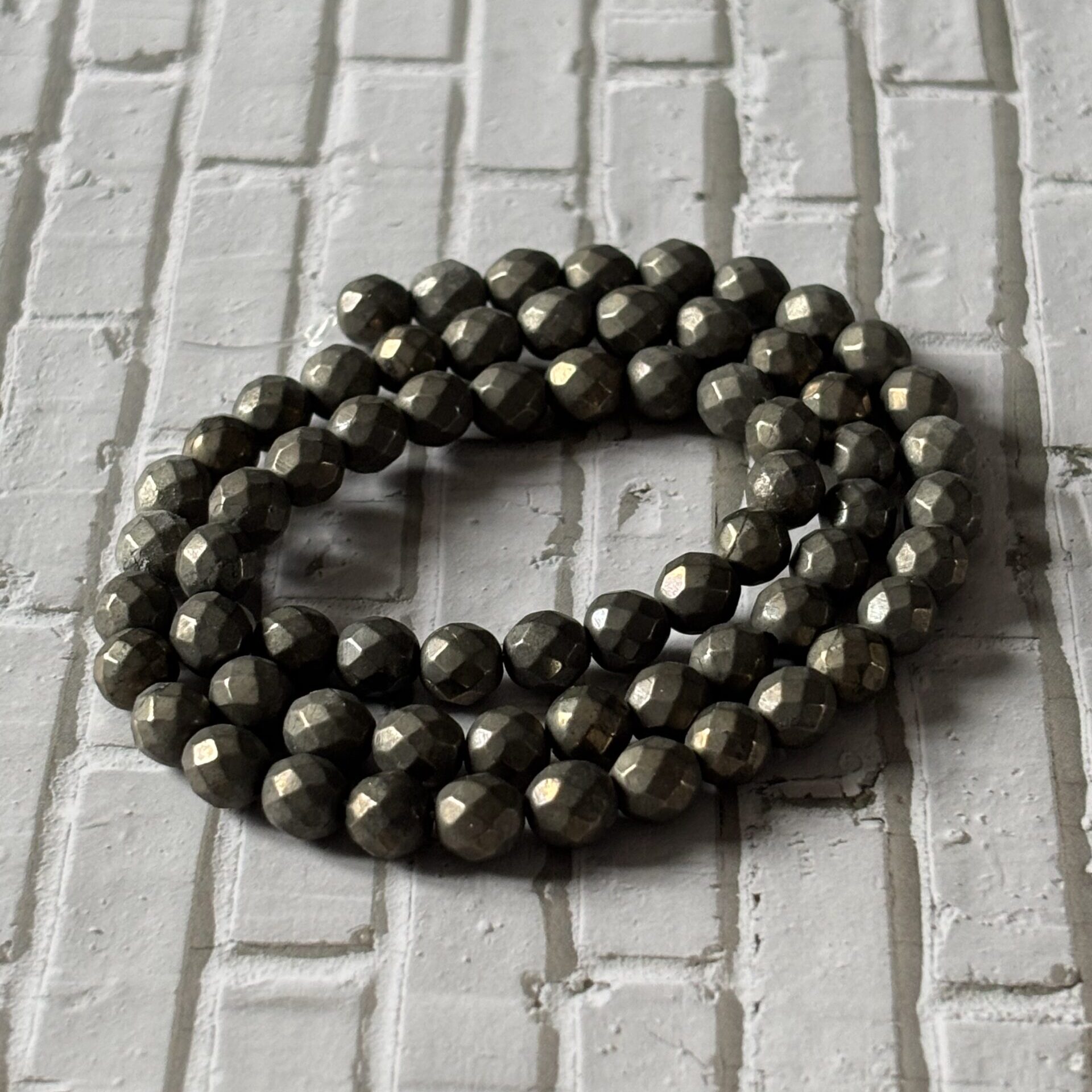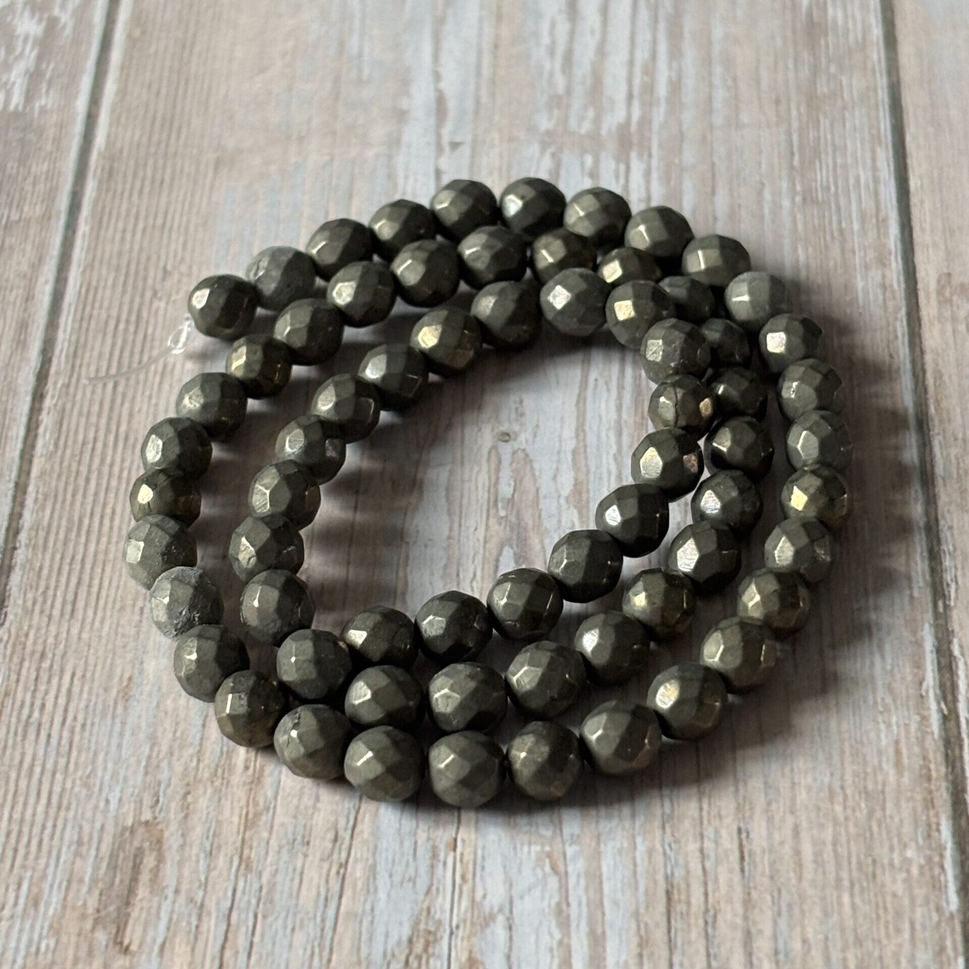 Pyrite perles à facettes 6 mm à l’unité – Provenance Pérou – Qualité AA très bonne.
