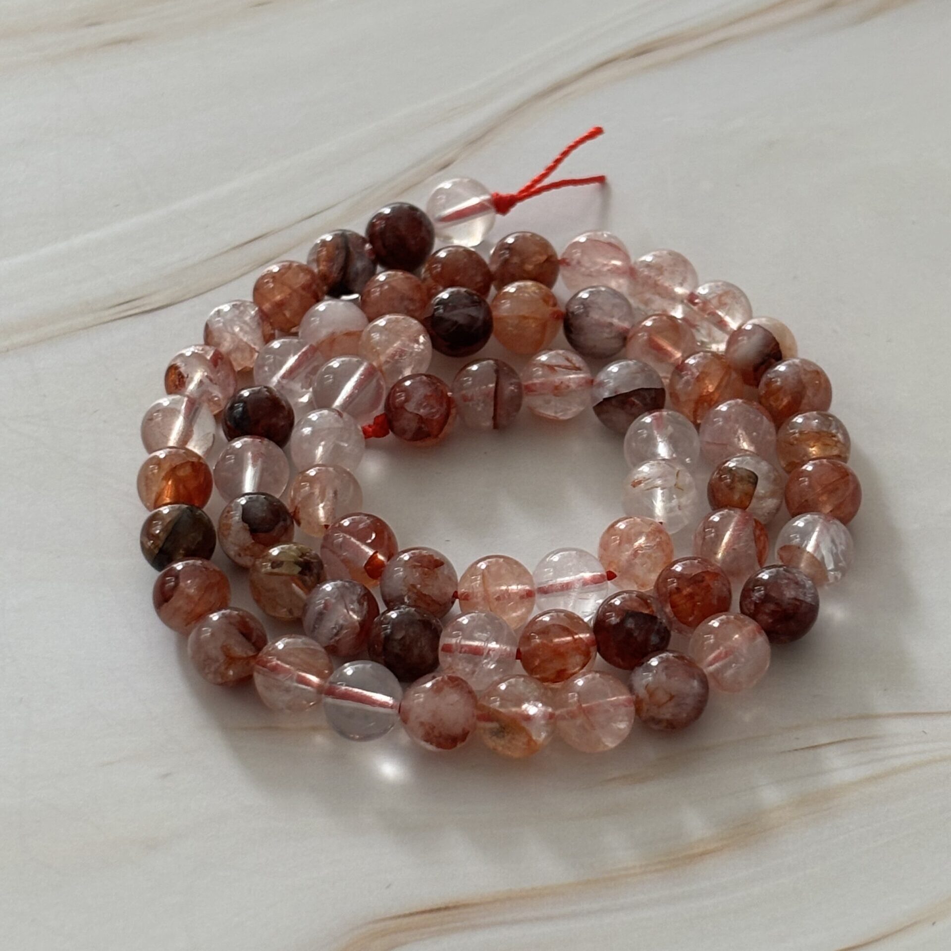Perles quartz hématoide 6 mm à l’unité – Provenance Brésil – Qualité AA très bonne