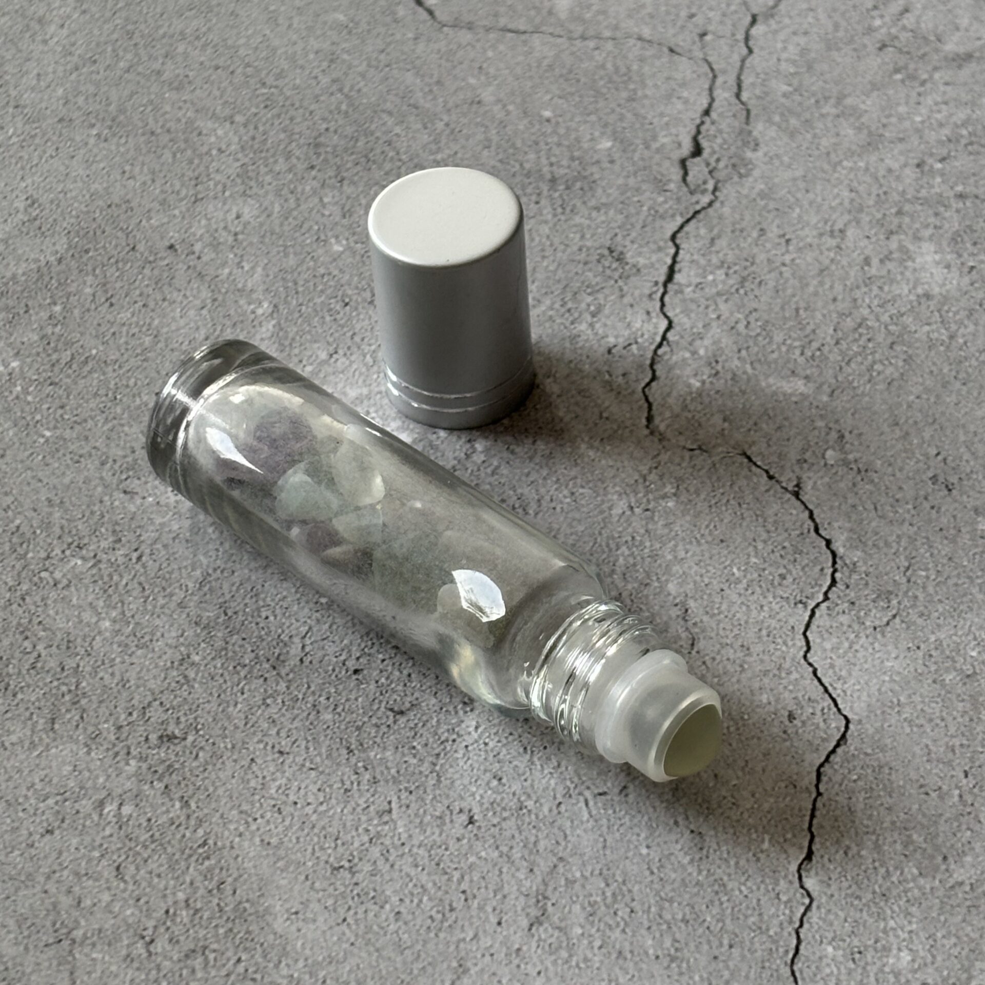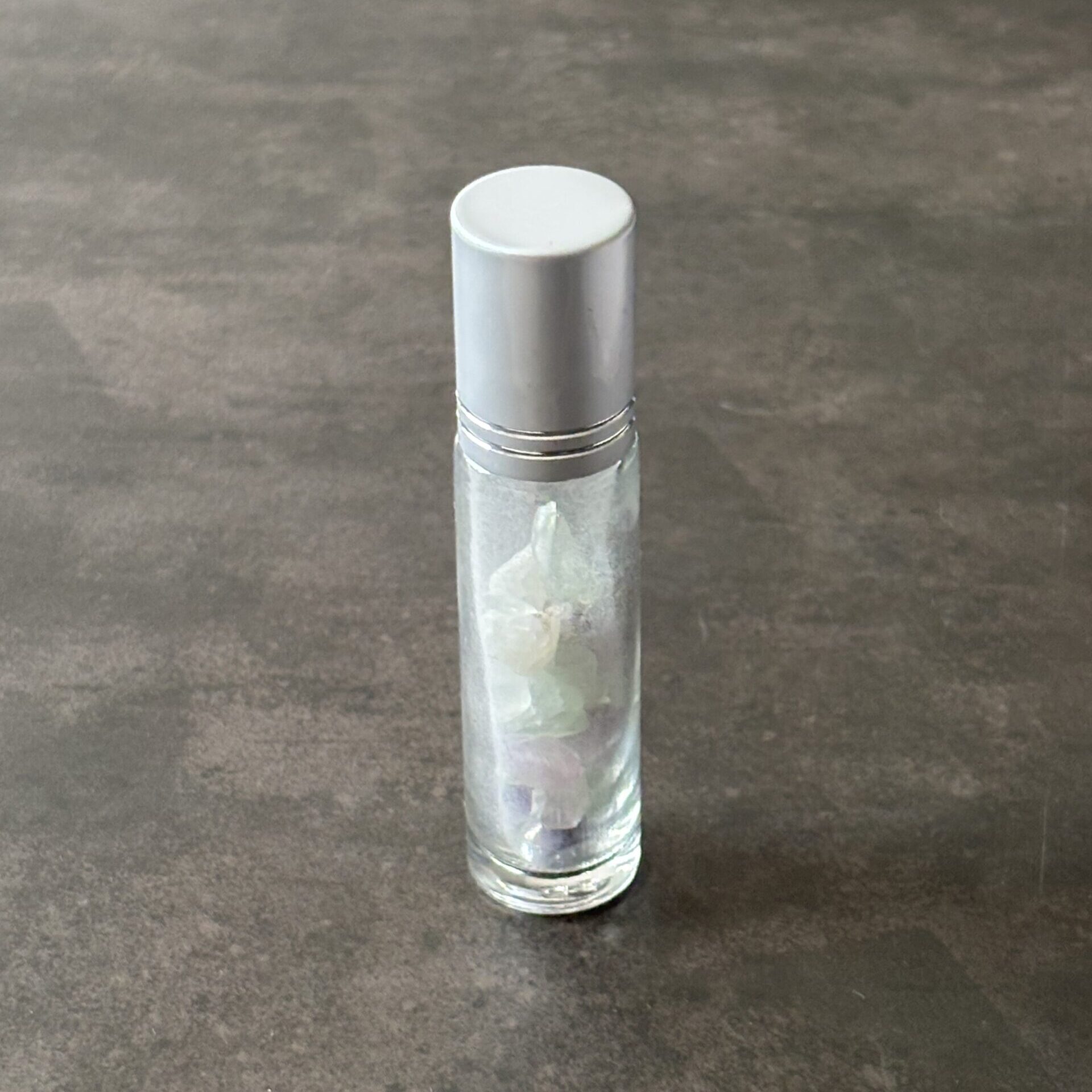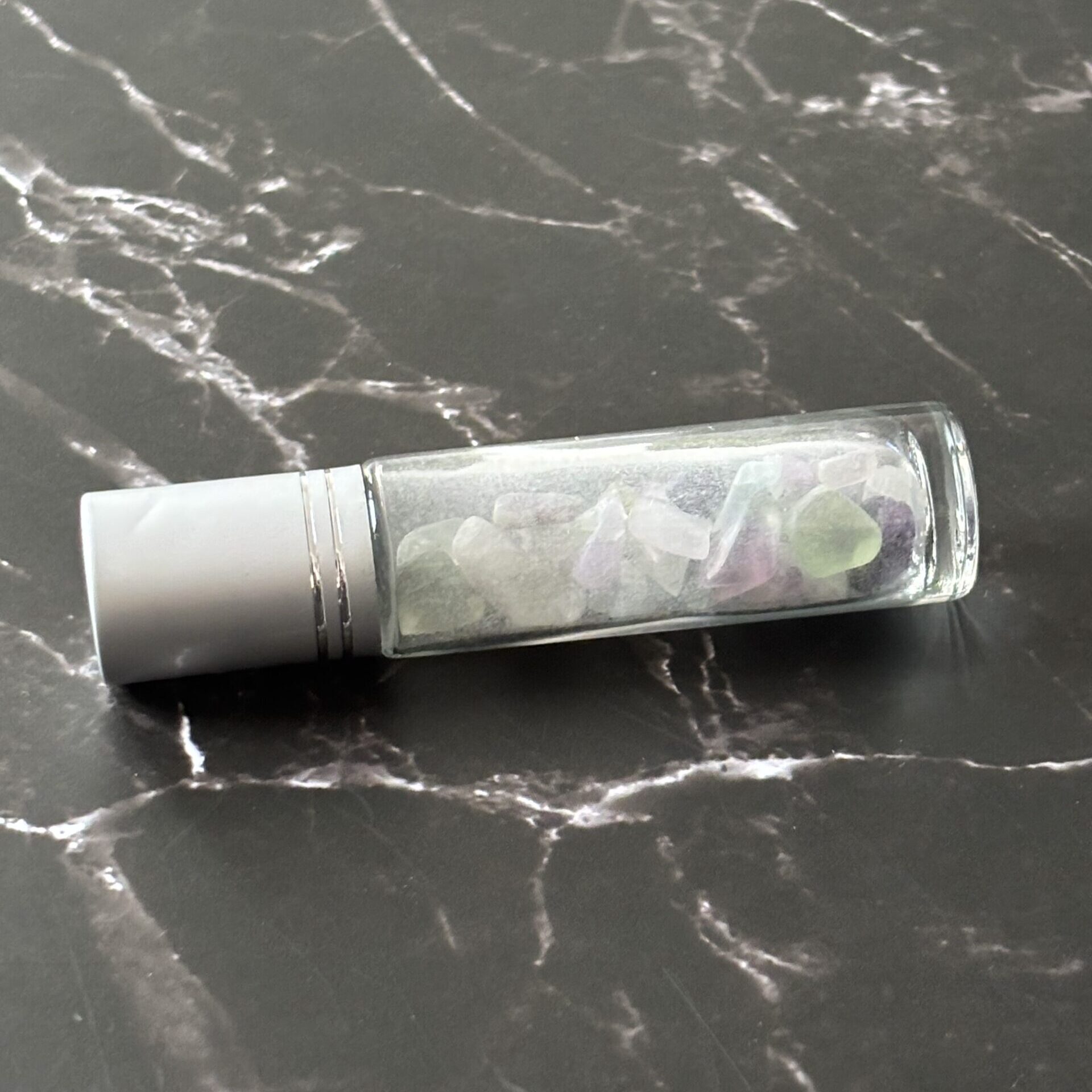 Roll ‘on pierre naturelle fluorite ou fluorine – Roll-on diffuseur d’huiles essentielles ou huiles de massage 9 x 2cm
