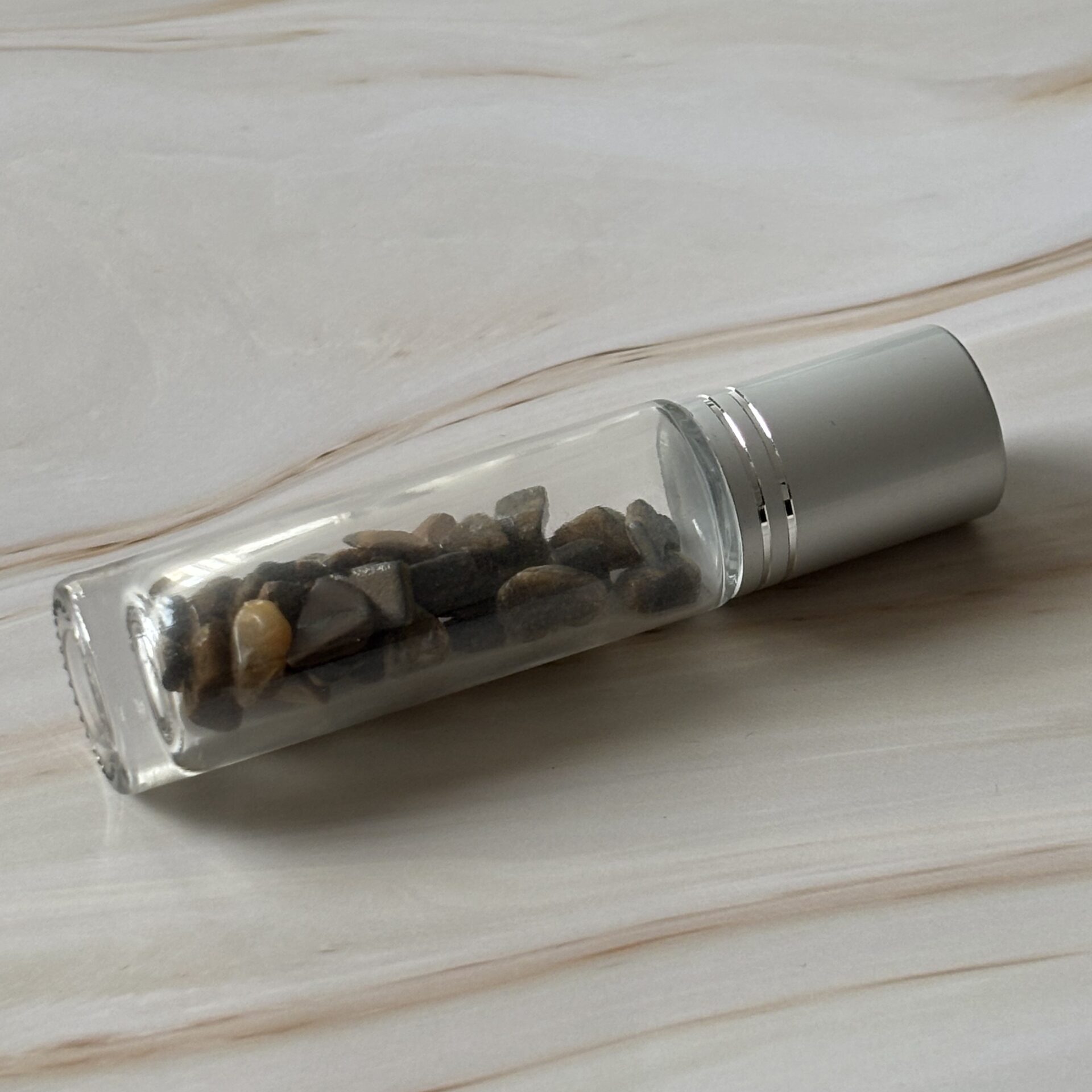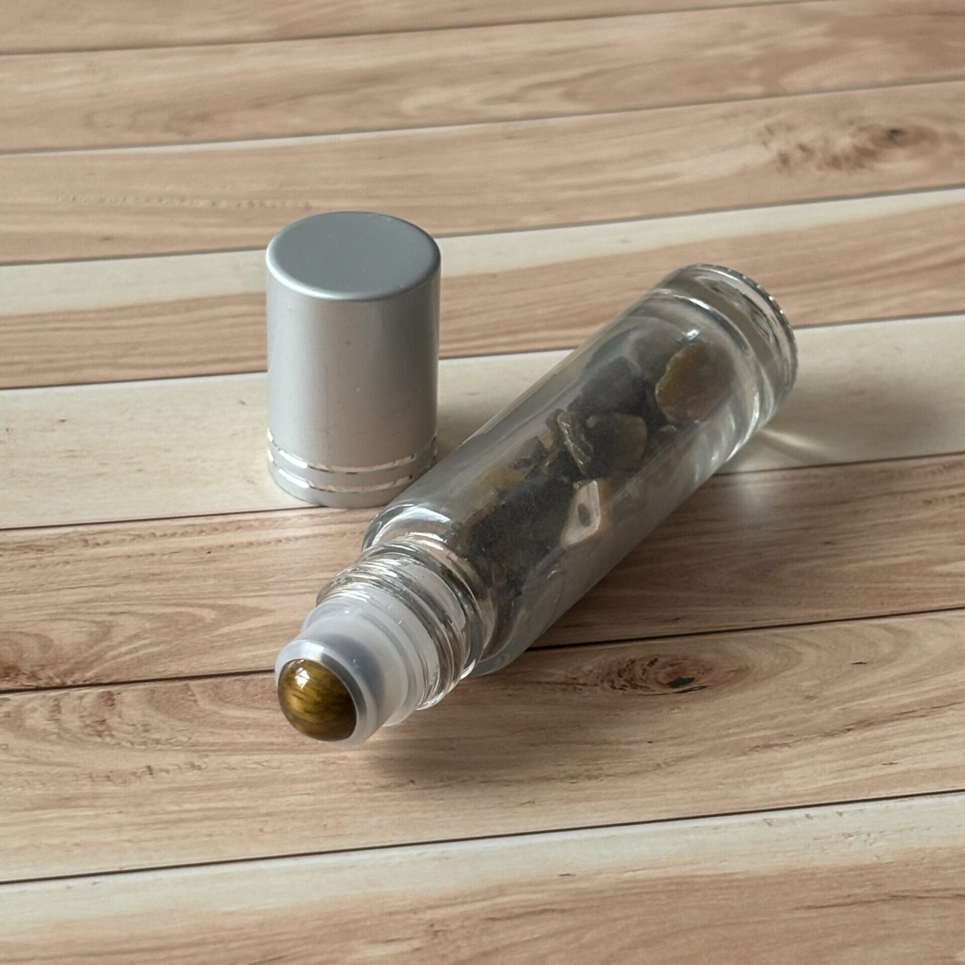 L’alliance de l’œil de tigre et des huiles essentielles dans un roll-on combine les bienfaits des deux éléments. Ce mélange amplifie l’effet de chacun et permet de profiter pleinement de leurs vertus. L’œil de tigre, en tant que pierre d’ancrage, s’harmonise parfaitement avec les huiles essentielles. Le roll-on permet une application pratique et ciblée, idéale pour une utilisation quotidienne. Il soutient la guérison émotionnelle, équilibre les énergies et favorise un état de calme intérieur. Ainsi, ce roll-on devient un outil puissant pour se recentrer et manifester des intentions claires.