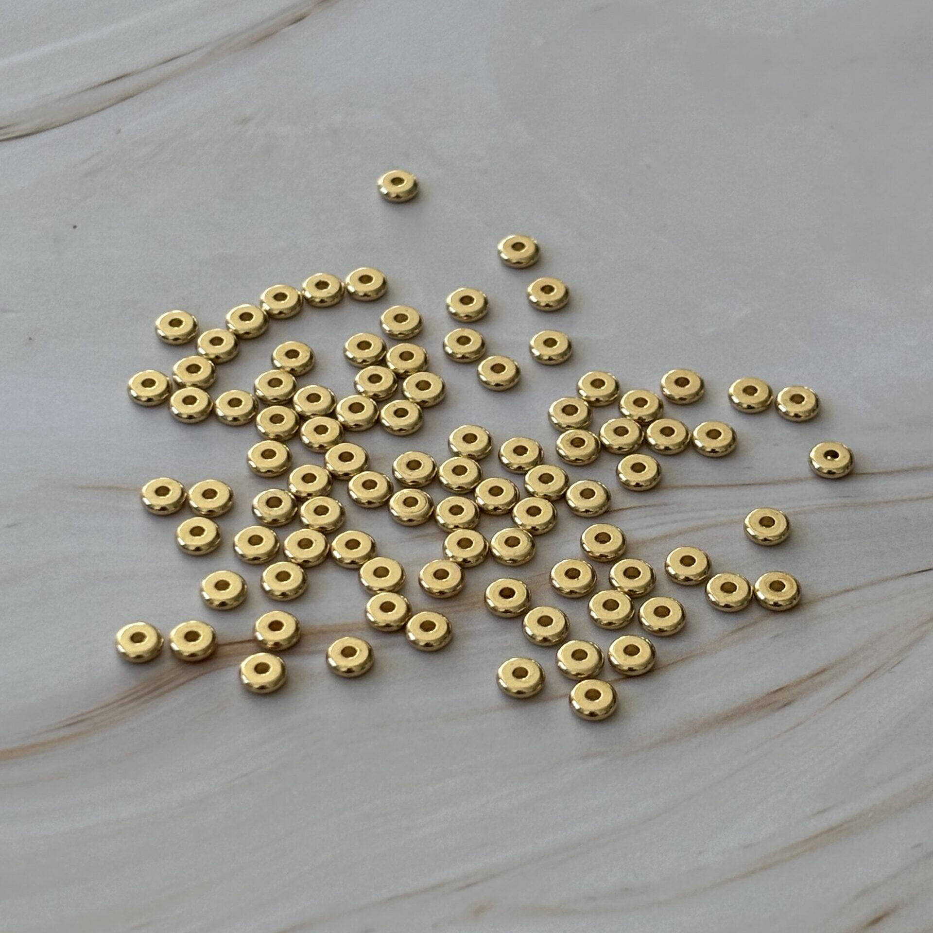 Rondelle acier inoxydable plaqué or à l’unité – Dimensions environ 3 x 1 mm et Trou d’environ 1mm –