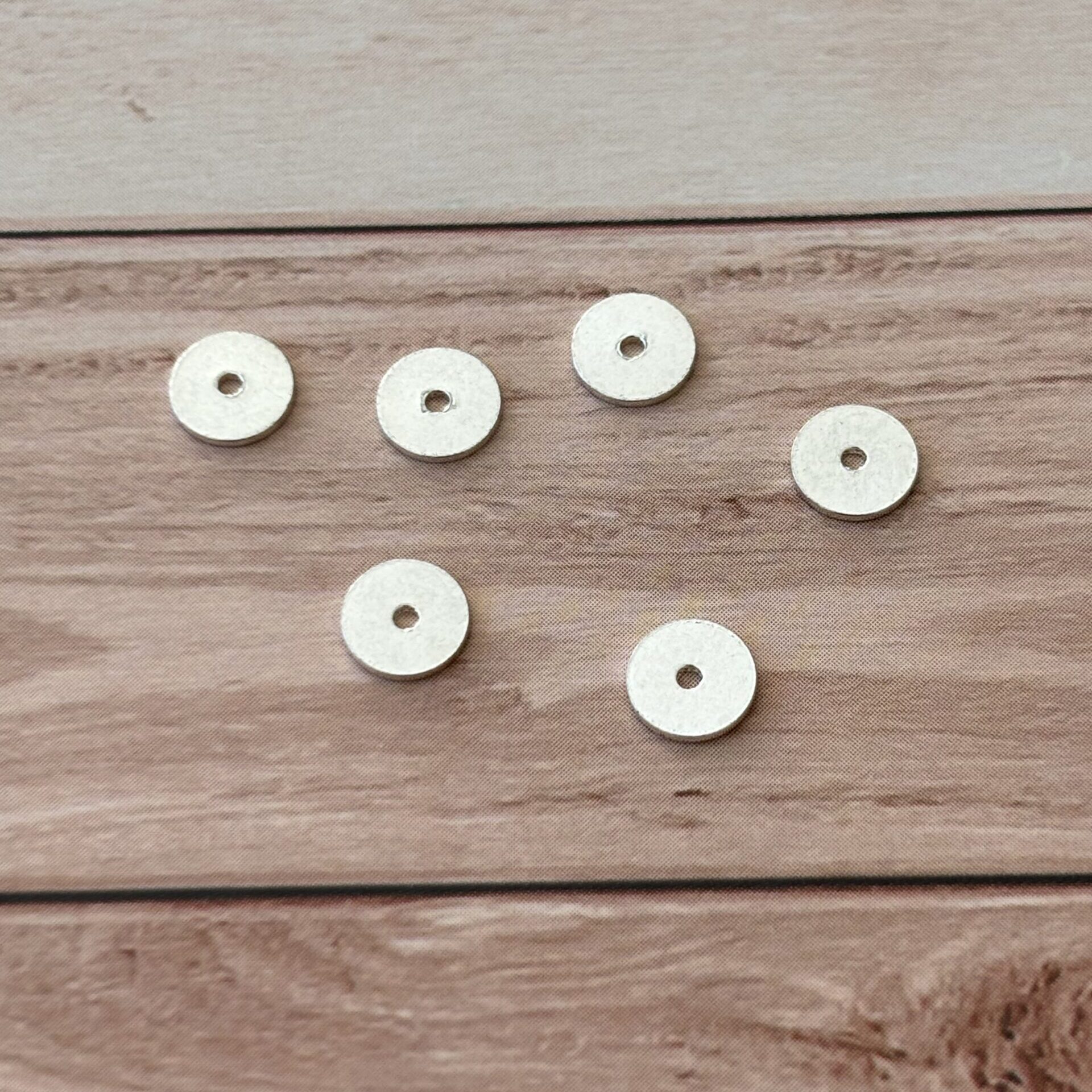 Disque plat argent 925 à l’unité – Dimensions environ 5 x 0.5 mm et Trou d’environ 0.9 mm –