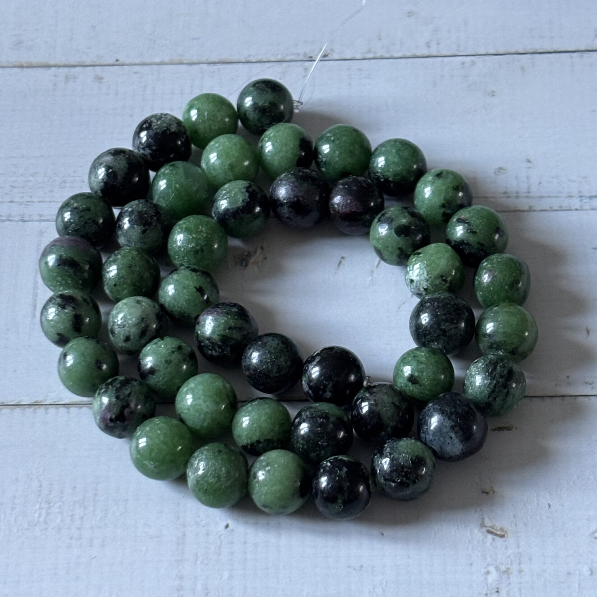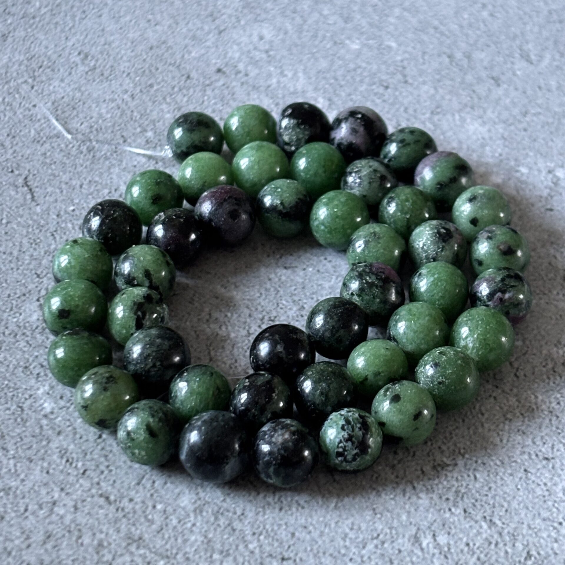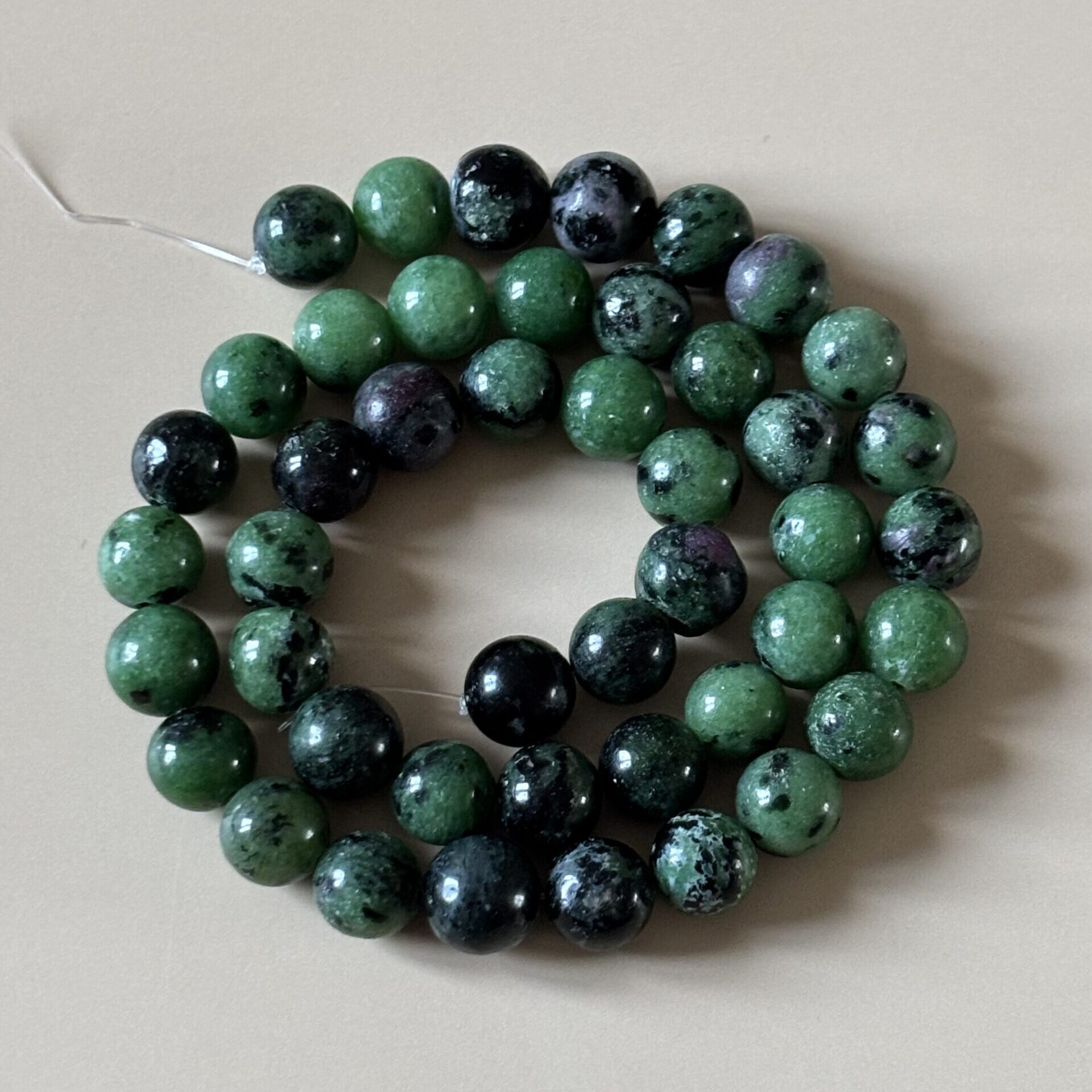 Perles rubis zoisite 8 mm à l’unité – Provenance Tanzanie – Qualité AA très bonne.