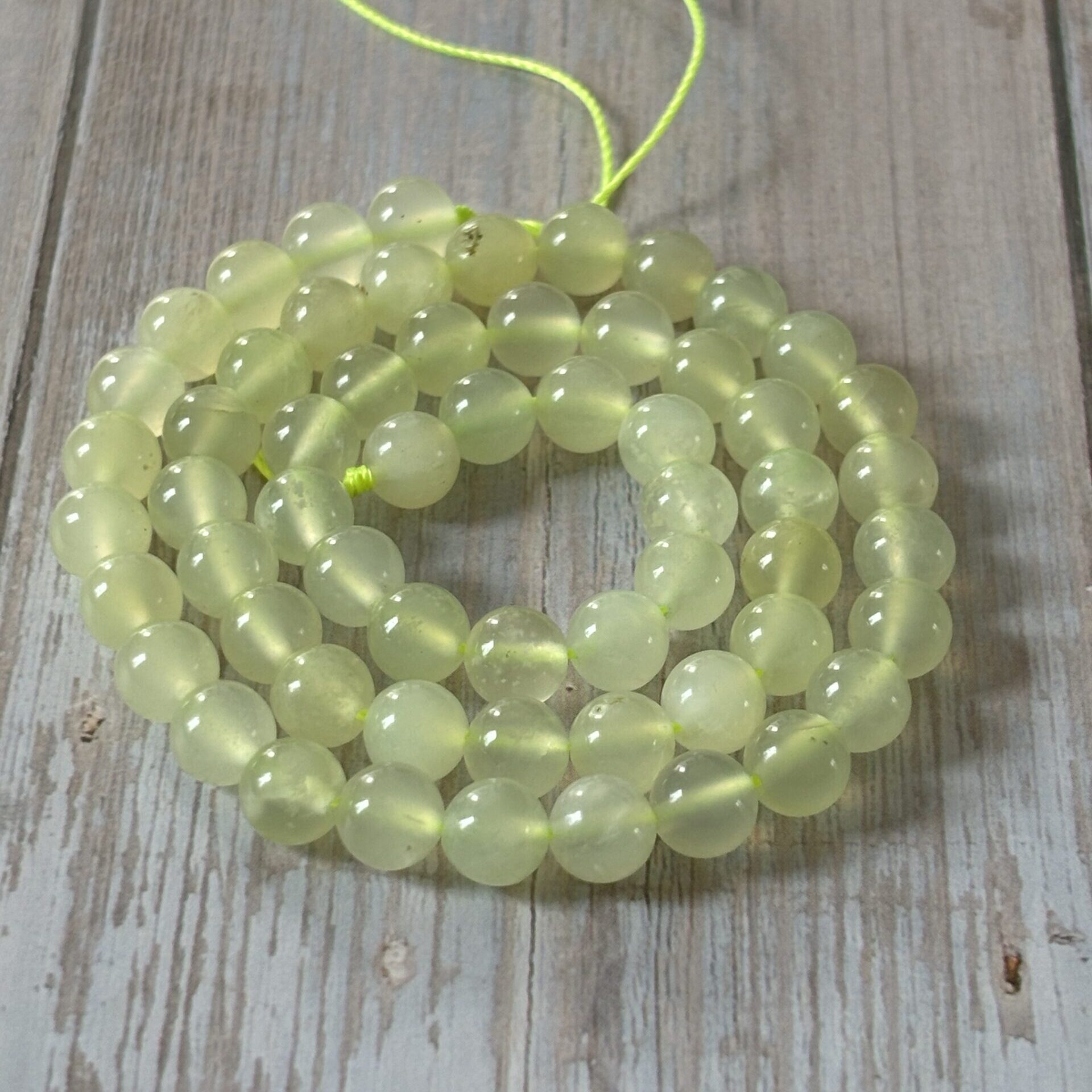 Perles naturelles 6mm de serpentine Bowenite à l’unité – Provenance Chine – Qualité A+ bonne.